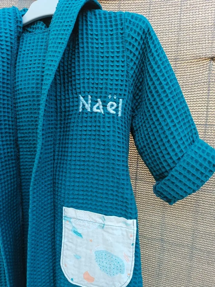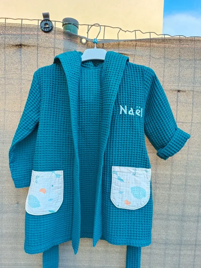 Peignoir 4/5 ans TBe général, Étiquette taille manquante car fait totalement à la main Broderie : Naël (si par coïncidence votre enfant porte le même prénom 😀)