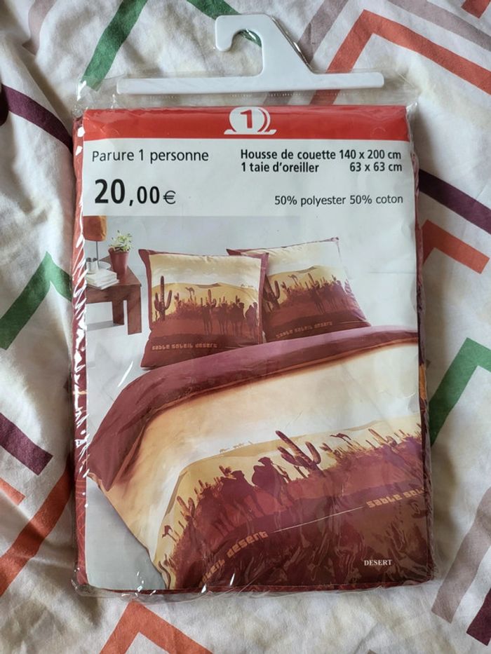 Parure de lit 1 personne neuve motif désert 1 housse de couette 140 × 200 cm 1 taie d'oreiller 63x 63 cm 50% polyester 50% coton