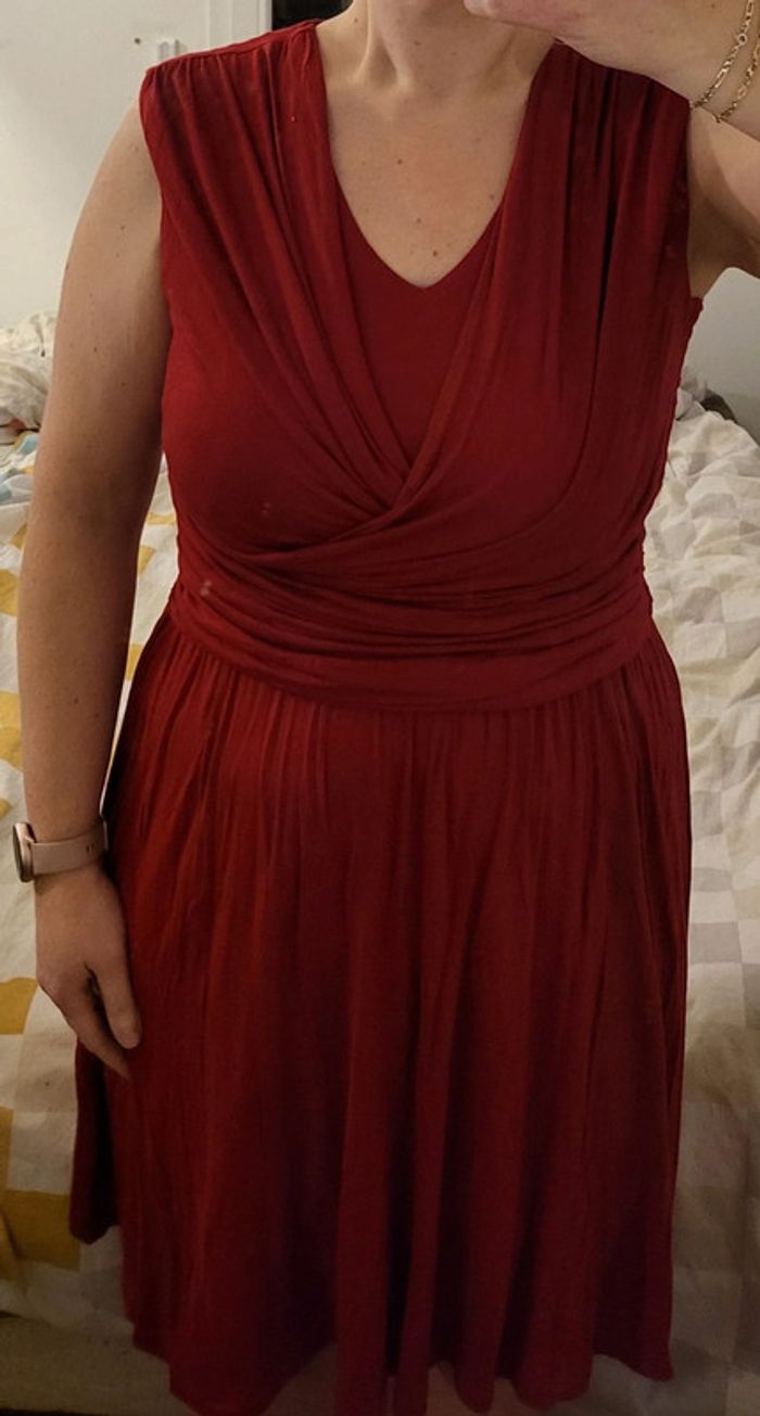 Robe rouge mi-longue Effet drapé Portée une fois Taille 44