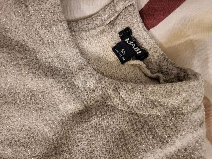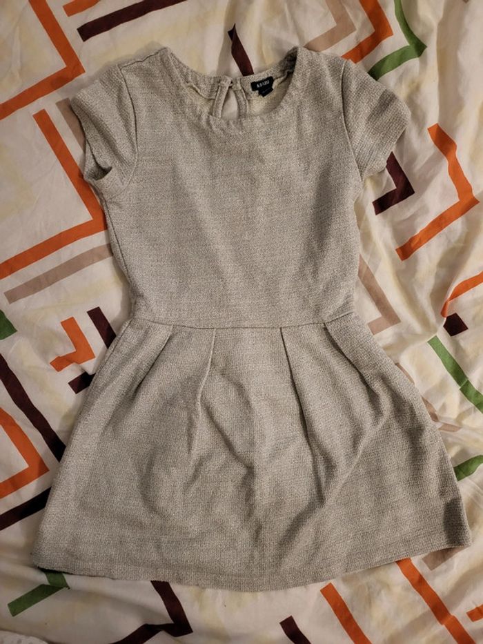 Robe grise manches courtes fils argentés 8ans Kiabi Cela ne se voit pas sur les photos mais elle est faite avec une multitude de fils argentés pour un joli effet pour anniversaire, fête, cérémonie, Noël, etc