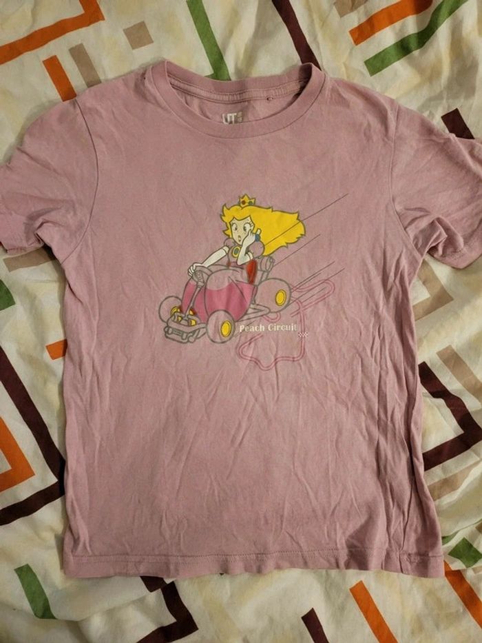 Tee-shirt rose motif Peach de l'univers Mario Taille 7/8 ans A noter, petite tache noire sur le haut de l'épaule droite