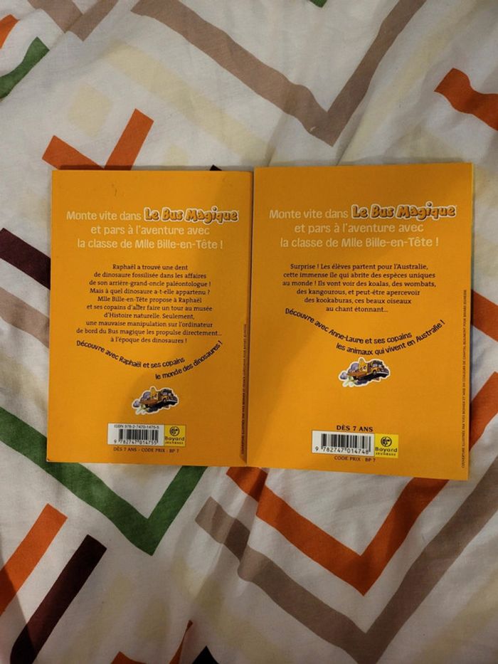 Lot de 2 livres Le Bus Magique - Attention aux dinosaures ! - Sur la piste des kangourous Monte vite dans le Bus Magique et pars à l'aventure avec la classe de Mlle Bille-en-Tête Bon état Bayard Jeunesse Dès 7 ans