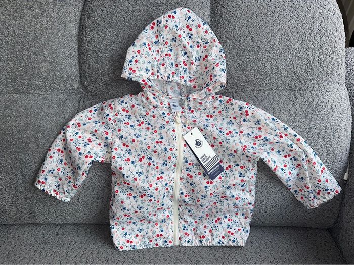 Coupe vent anti-uv, imprimée à fleurs couleur blanc/multicolore de chez Petit Bateau. Taille 24 mois. Neuf avec étiquette. Maison non fumeur et sans animaux.
