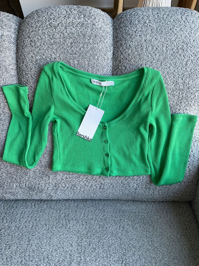Haut manches longues / top court de couleur vert de chez Bershka. C’est une taille S. Neuf avec étiquette. Maison non fumeur et sans animaux.