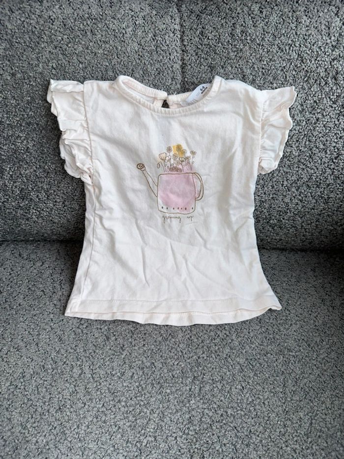 T shirt manches courtes de couleur rosé. Marque Zara et taille 12mois. Neuf, jamais porté. Maison non-fumeur et sans animaux.