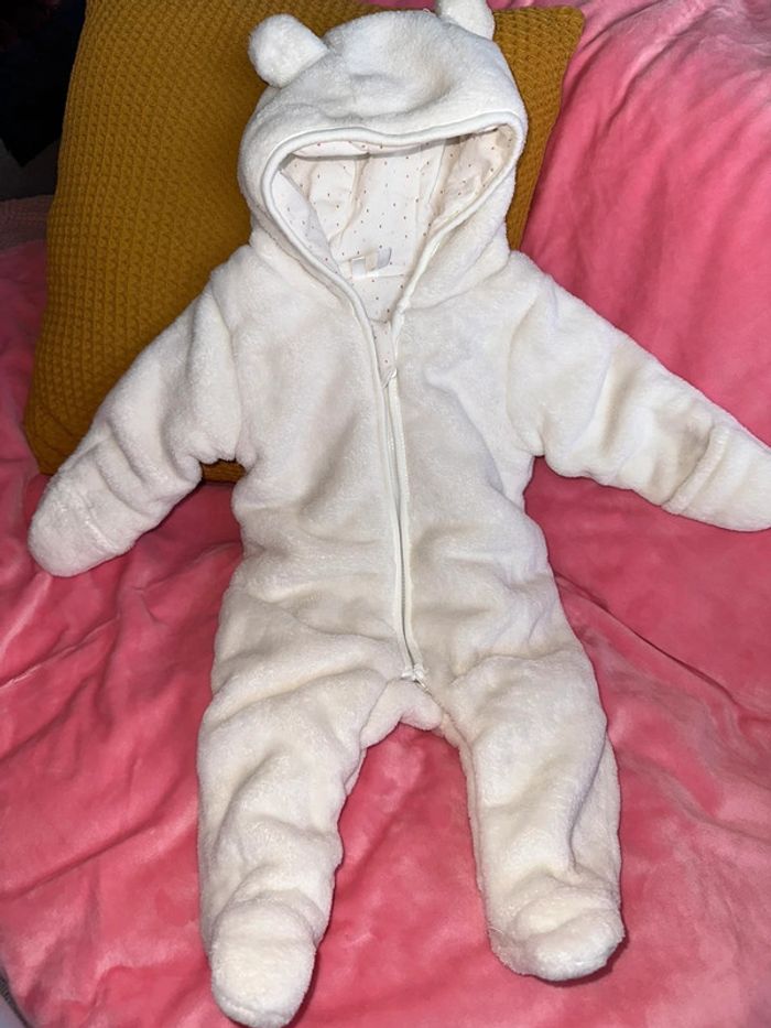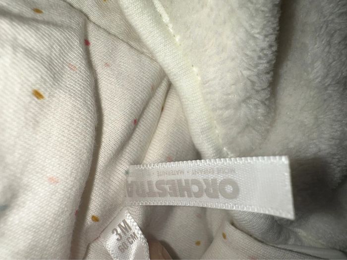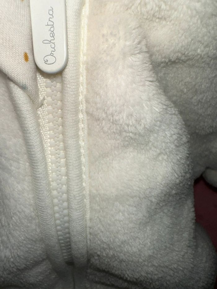 Combinaison pilote en polaire très chaud de la marque Orchestra. C’est une taille 3 mois. La combinaison est neuve elle n’a jamais été porté (nous avons utilité un nid d’ange directement). Ouverture à zip sur le torse et ouverture pression à l’entrejambe. Payé 45,99€. Maison non fumeur