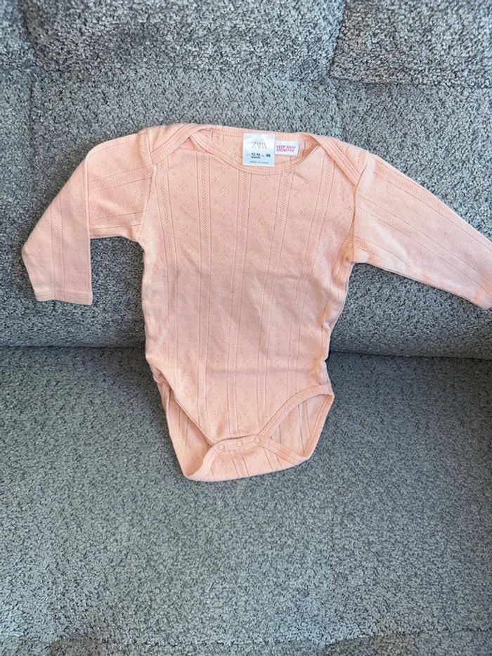 Bodie manches longues de couleur rose de chez Zara. C’est une taille 24 mois. Totalement Neuf, jamais porté par ma fille, juste lavé. Maison non fumeur et sans animaux.