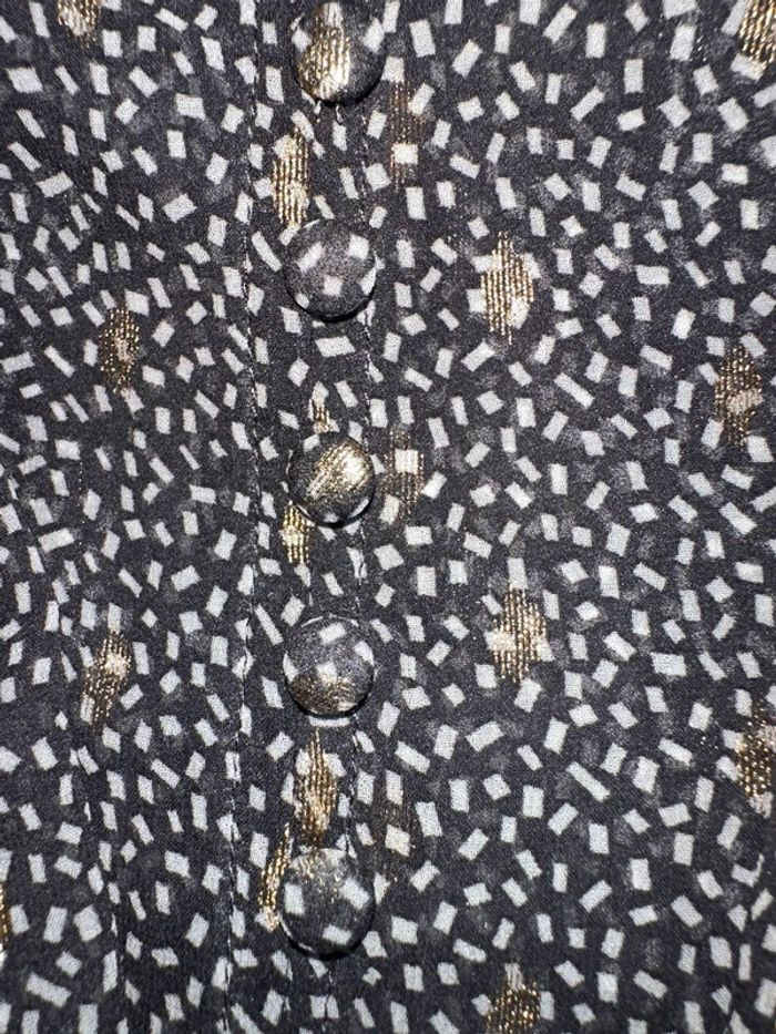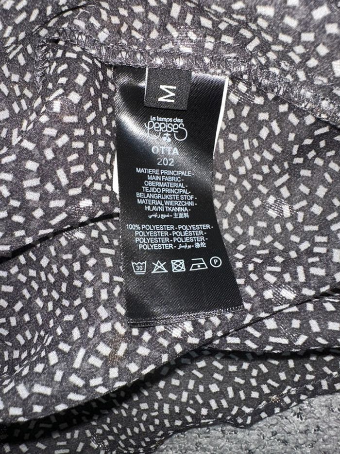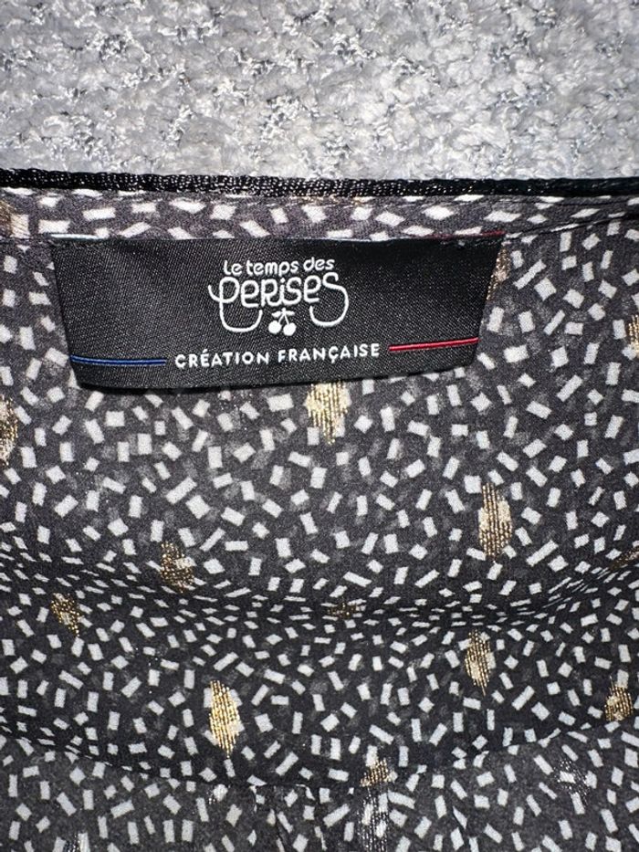 Blouse / chemisier manches longues fluide noir à motifs dorés de la marque Le Temps Des Cerises. C’est une taille M. Neuf, jamais porté. Maison non fumeur et sans animaux.