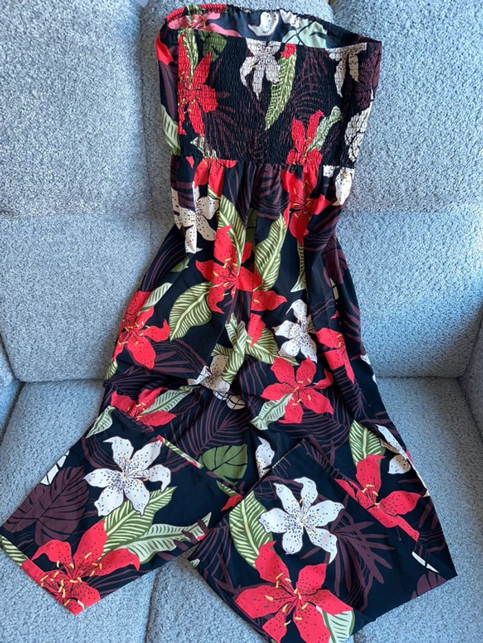 Combinaison bustier fluide à jambes large, avec motifs fleuri. Excellent état. Taille unique. Maison non fumeur et sans animaux.