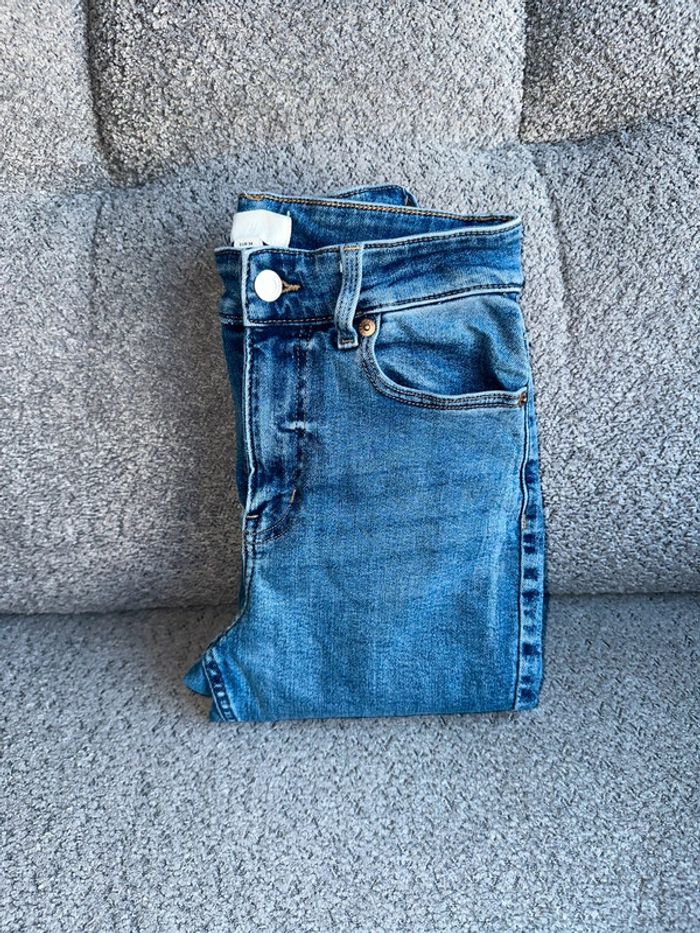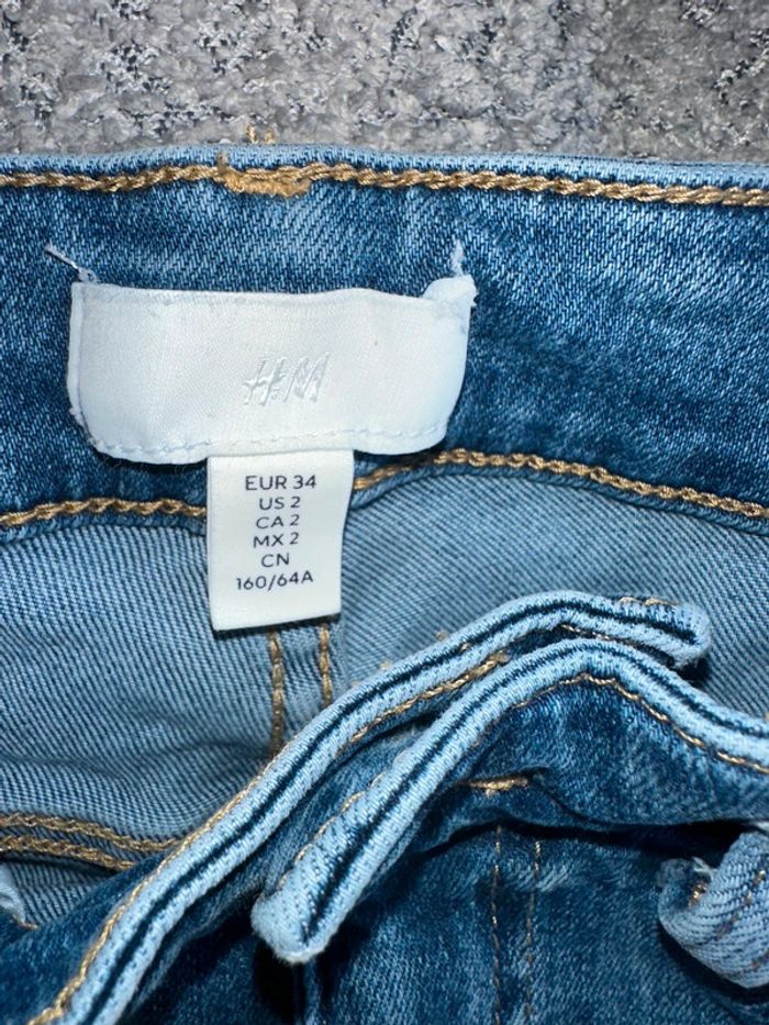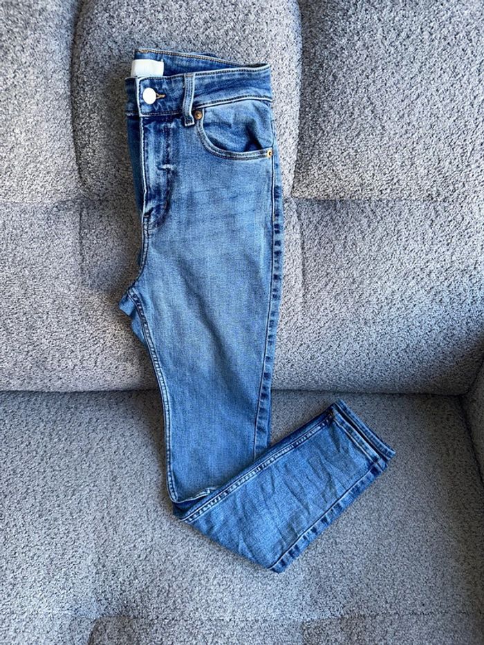 Jean skinny bleu taille haute de chez H&M. C’est une taille 34. Le jean est neuf, sans étiquette, jamais porté. Maison non fumeur et sans animaux.