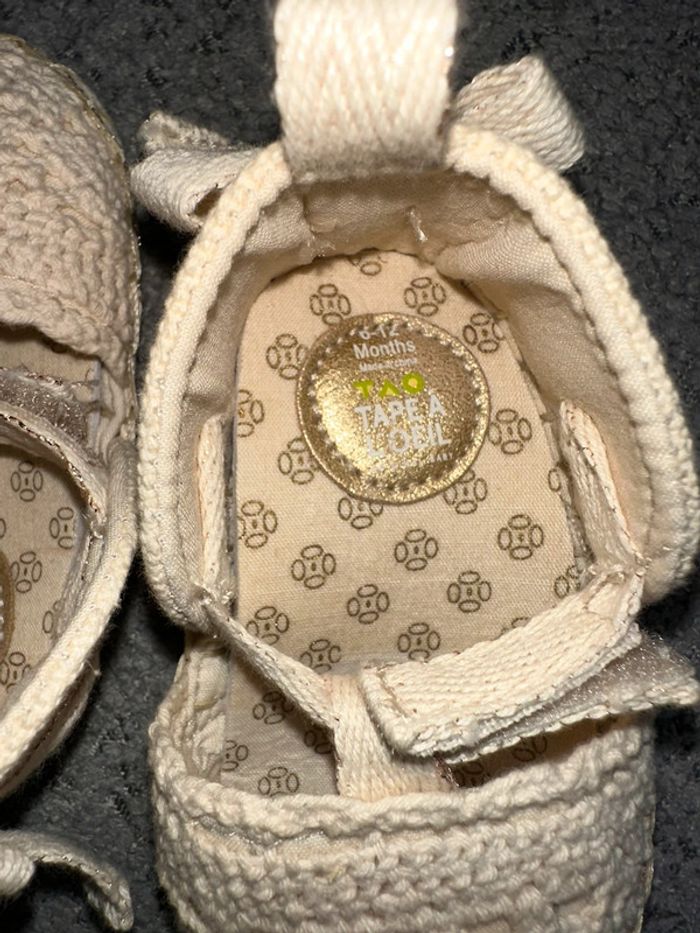 Chaussures / espadrilles de couleur crème de chez tape à l’œil. Taille 6-12 mois, jamais porté par ma fille. Maison non fumeur.