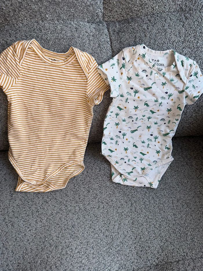 Lot de 2 bodies manches courtes de chez Tape à l’œil. Taille 9 mois, très peu porté. Maison non fumeur.