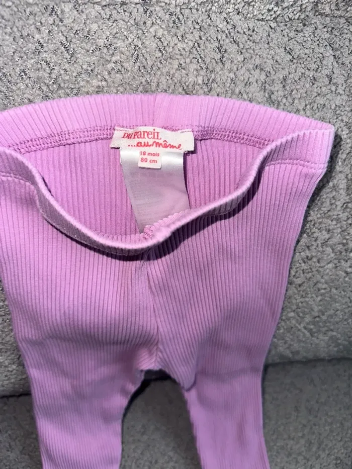 Legging de couleur Lila effet côtelé de chez Du Pareil Au Même. Taille 18 mois. Totalement neuf, jamais porté par ma fille. Maison non fumeur et sans animaux.
