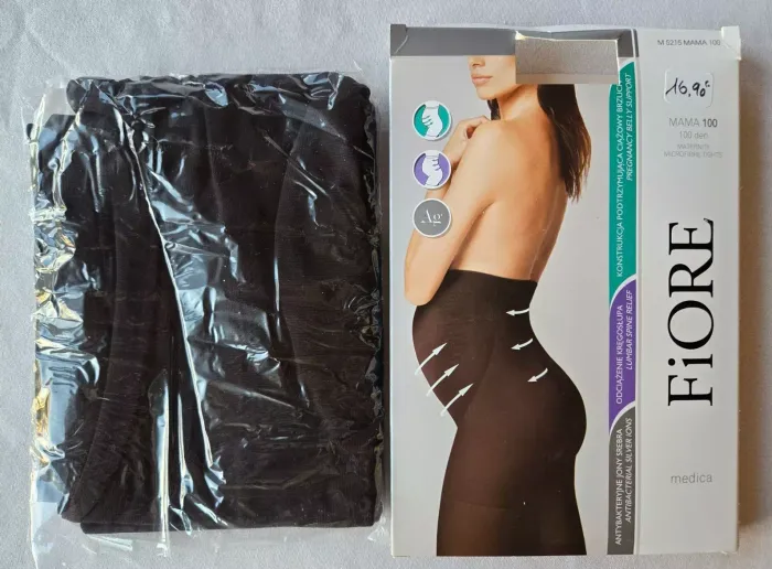 Collant de maternité noir Mama 100D marque Fiore taille 4/L Les collants de grossesse Mama 100 den assurent un confort et un ajustement optimal à la silhouette enceinte. Collants de grossesse de soutien qui maintiennent le ventre et en même temps réduisent la tension sur la colonne vertébrale, apportant soulagement et stabilité dans ce moment très important de la vie des futures mamans. Grâce à l'application de la technologie Silver Fresh, la peau de la femme reste fraîche et sèche et le problème de la croissance bactérienne et fongique est maîtrisé. 80% polyamide 20% élastane
