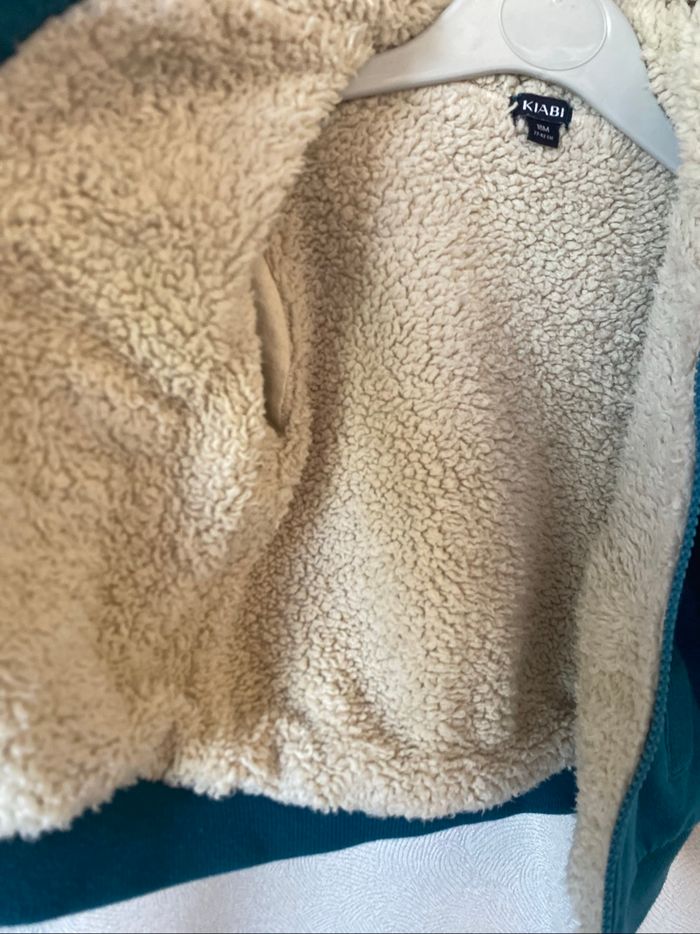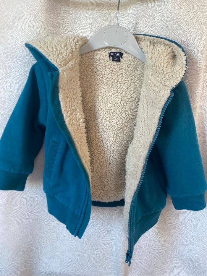 Gilet vert eider masque moutarde sur la capuche Doublure moumoute beige Taille 18 mois 77-82 cm kiabi Bon état car a été beaucoup porté, pas de tache pas de déchirure