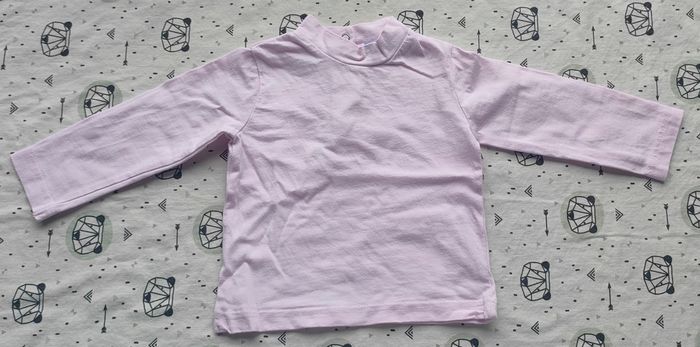 Tee-shirt ML avec col montant rose pâle en très bon état de la marque Tout Simplement pour fille taille 9 mois