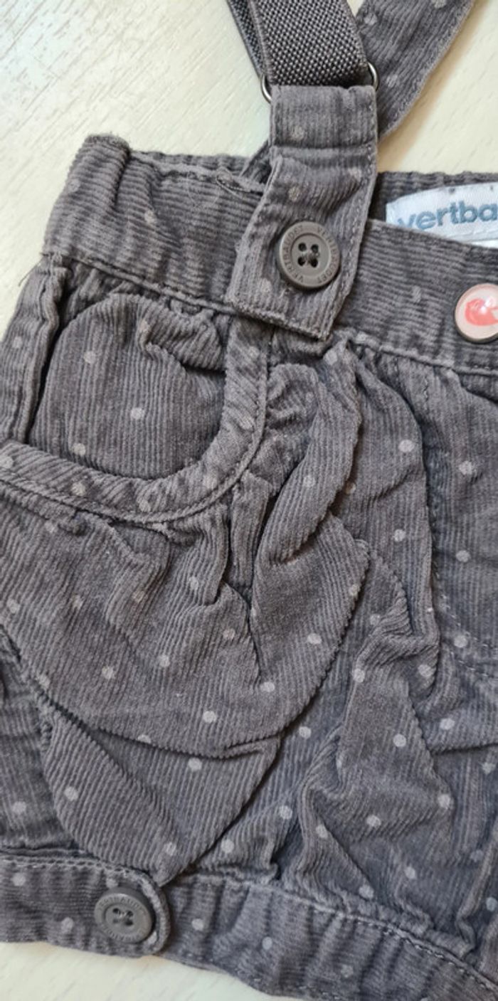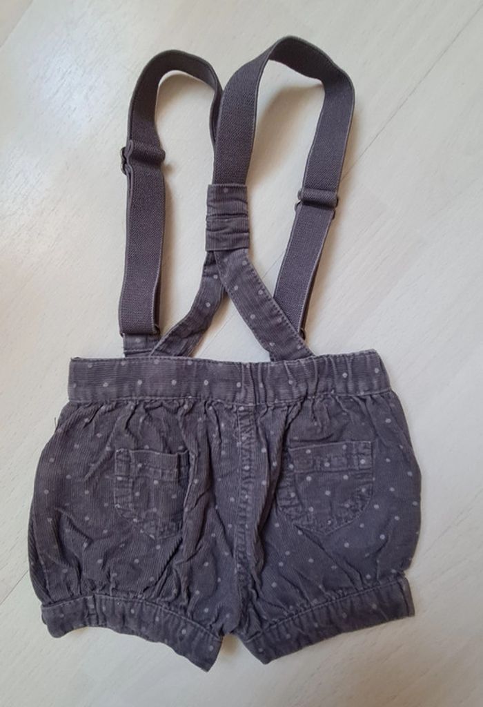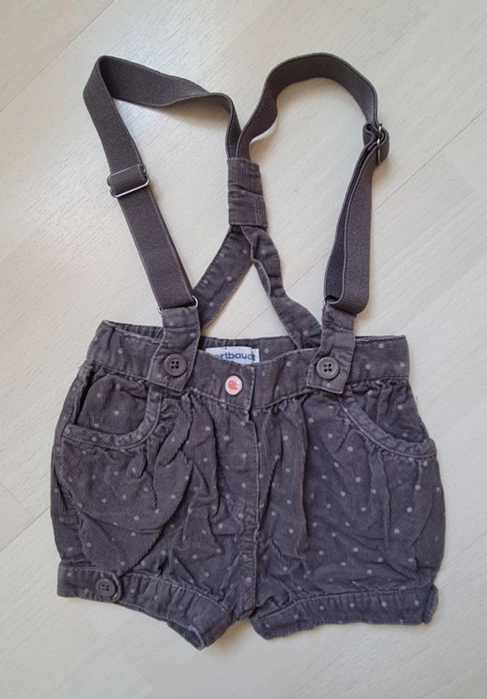 Vertbaudet taille 3mois / 60cm short à bretelles style rétro en velours de coloris marron avec petits pois gris-roses bretelles amovibles et réglables ceinture réglable + 2 boutons pression devant 2 poches devant, 2 poches derrière très bon état #simdelinetroismois #simdelinefille