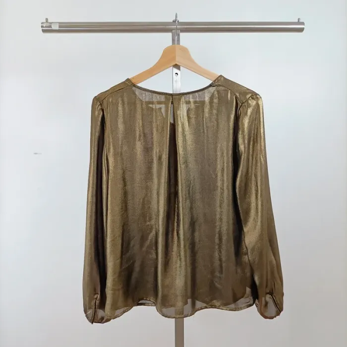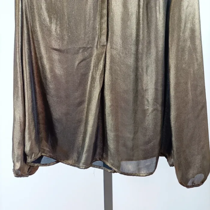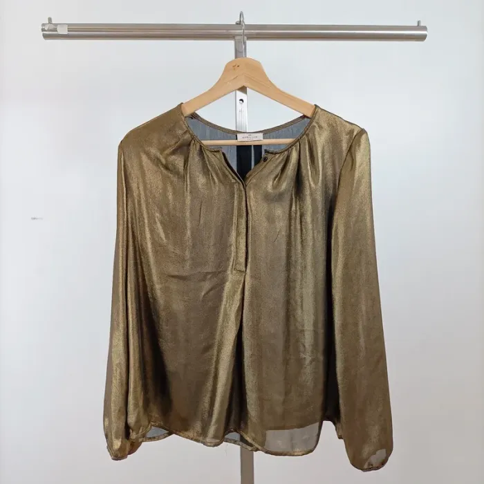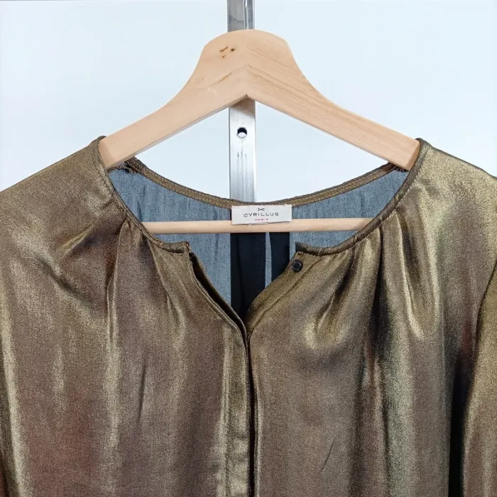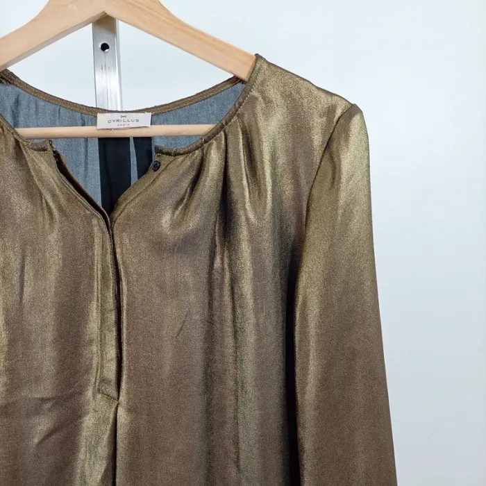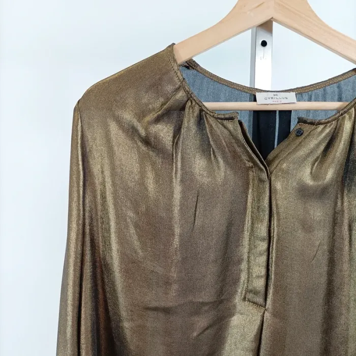Blouse fluide à manches longues Cyrillus Paris, coupe droite, coloris doré métallisé avec effet satiné.