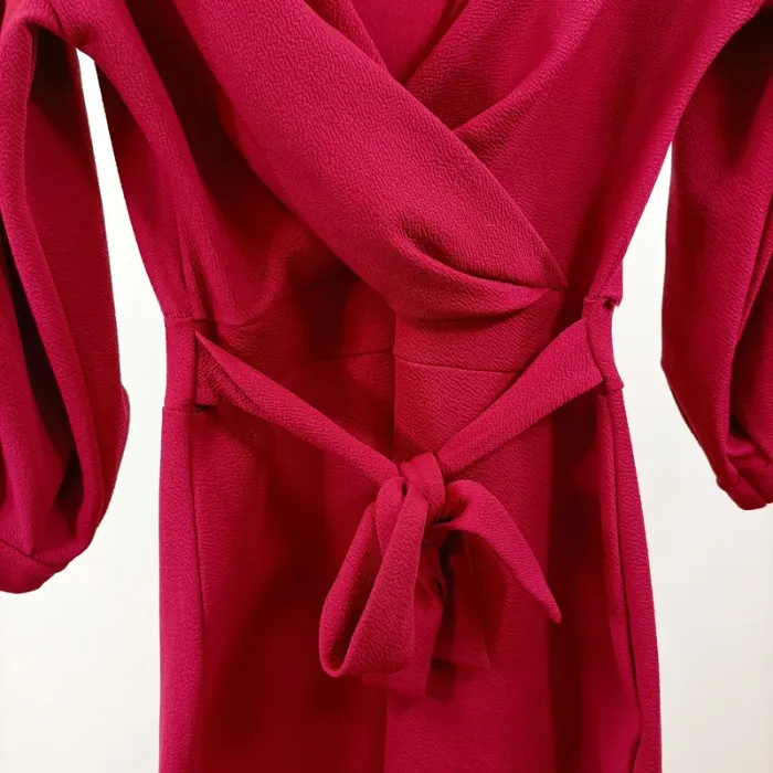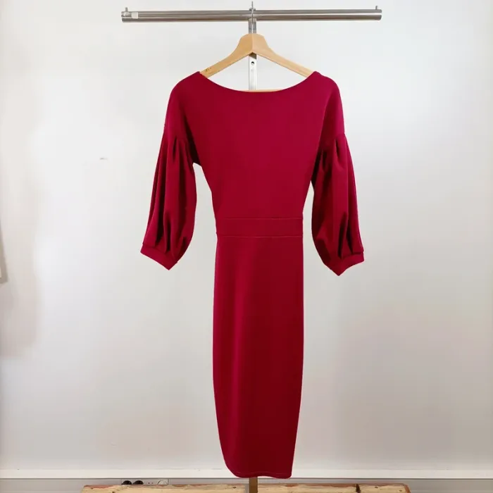 Robe rouge bordeau Boohoo taille 38 manches ballon croisée décolleté effet portefeuille A1528 - photo numéro 4