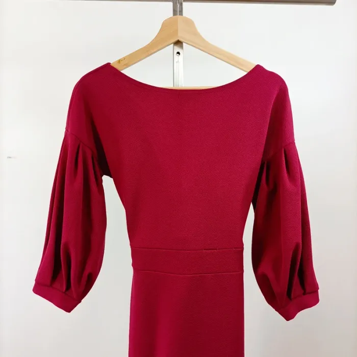 Robe rouge bordeau Boohoo taille 38 manches ballon croisée décolleté effet portefeuille A1528 - photo numéro 6
