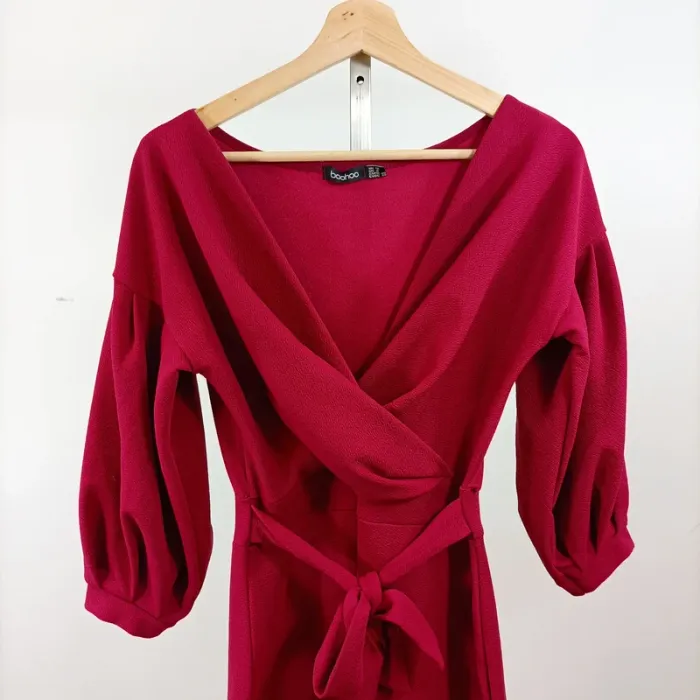 Robe rouge bordeau Boohoo taille 38 manches ballon croisée décolleté effet portefeuille A1528 - photo numéro 1
