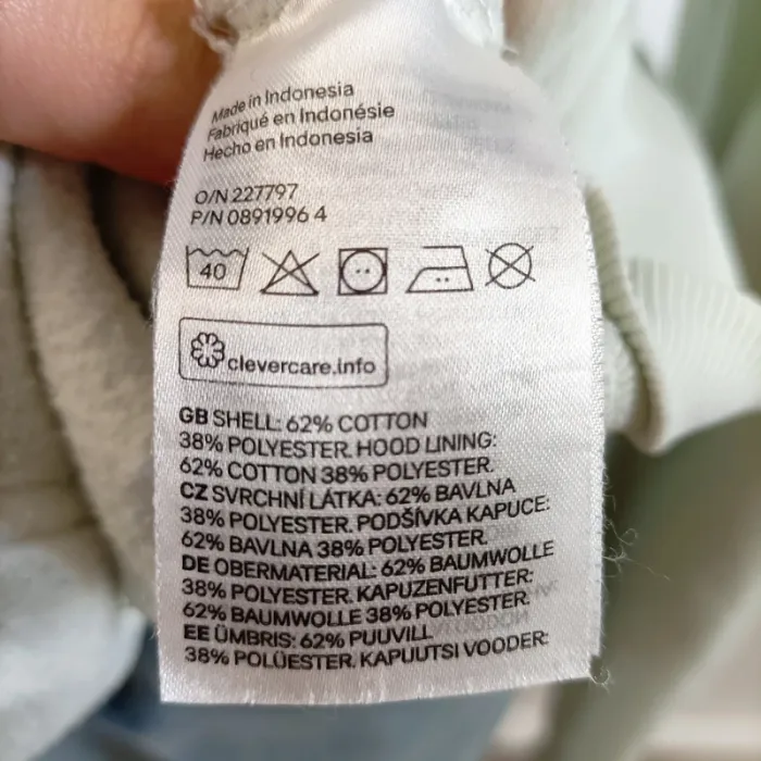 👕 Matière : 62 % coton, 38 % polyester (extérieur et doublure capuche)