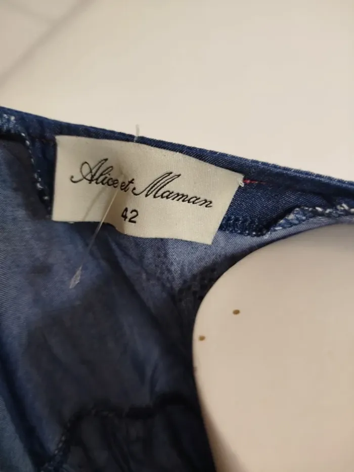 Robe ample en denim léger brodé Alice et Maman col tunisien taille 42 A1568 - photo numéro 10