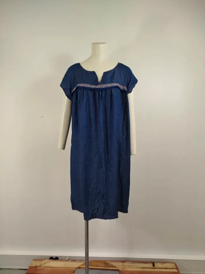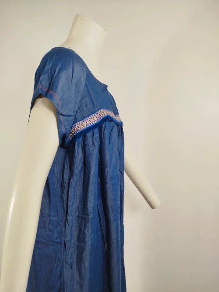 Robe ample en denim léger brodé Alice et Maman col tunisien taille 42 A1568 - photo numéro 5
