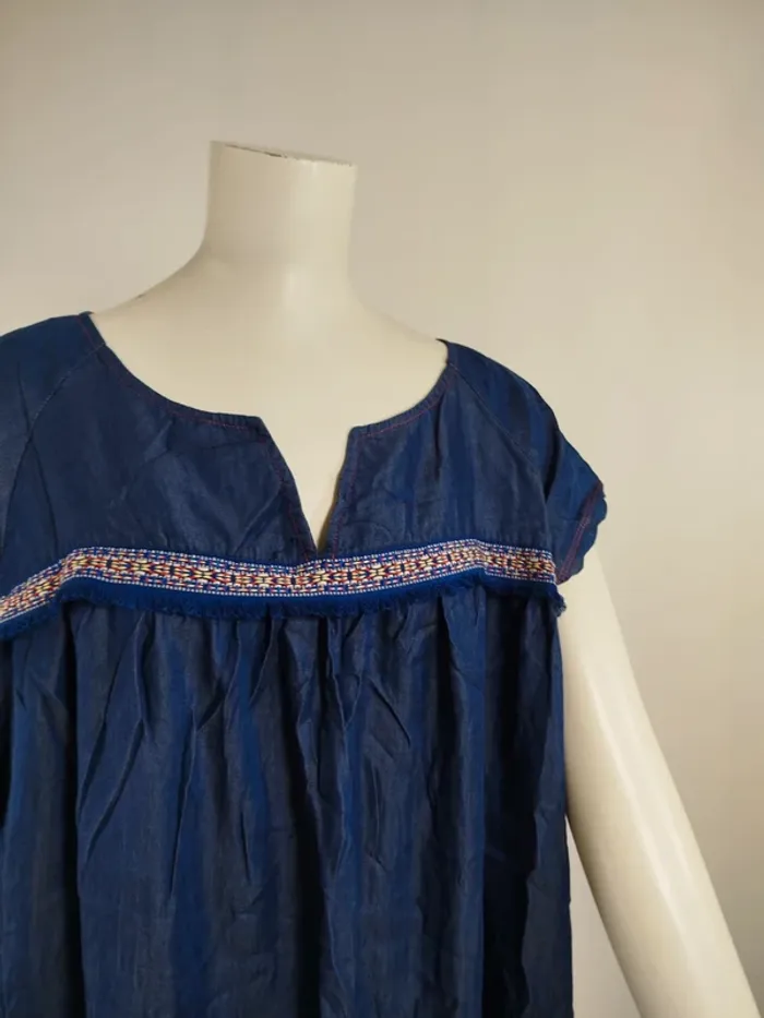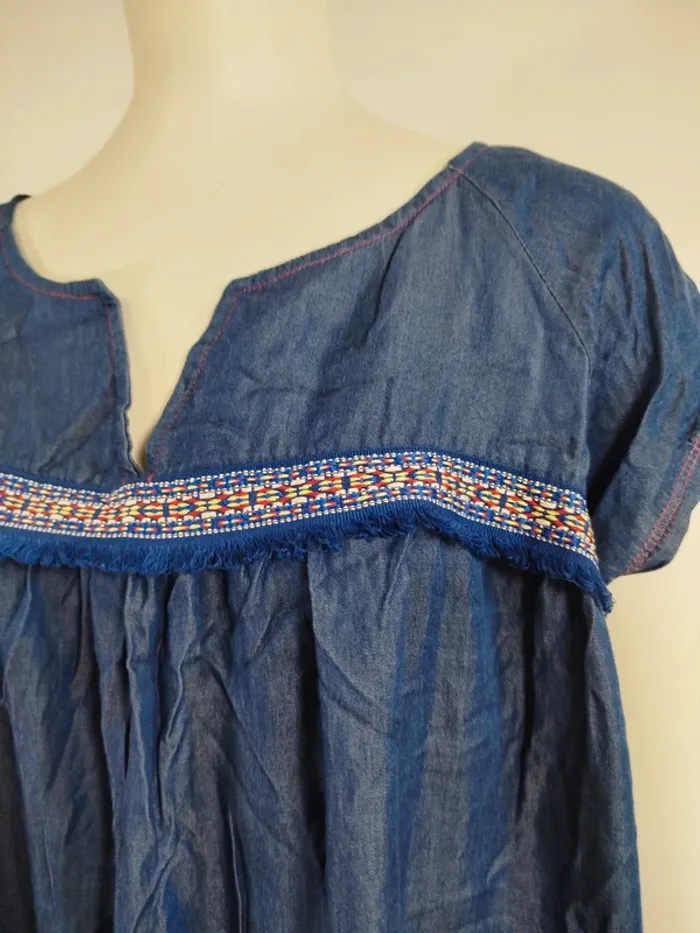 Robe ample en denim léger brodé Alice et Maman col tunisien taille 42 A1568 - photo numéro 6