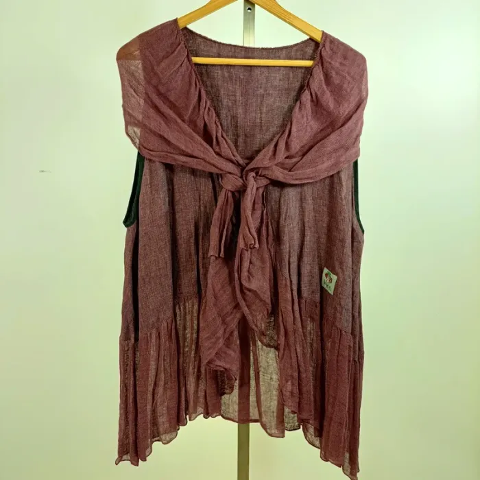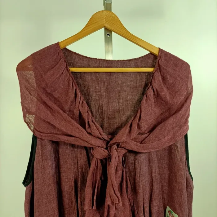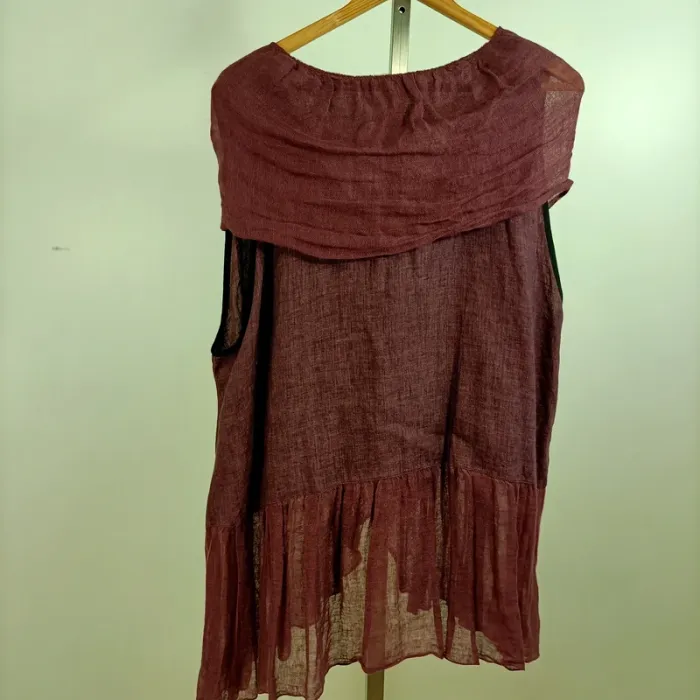 tunica donna boho, camicia estiva leggera, top ampio senza maniche, tunica artigianale, moda etica, top da festival, tunica a strati, look boho chic, tunica bordeaux estate, camicia fluida donna, moda sostenibile