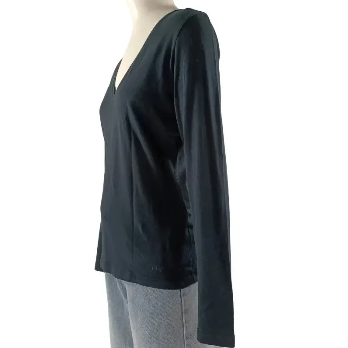 T-shirt noir manches longues Classique avec col V - mixte Hugo Boss - L A1088