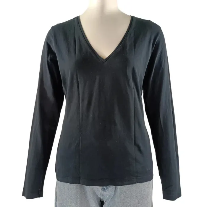 T-shirt noir manches longues Classique avec col V - mixte Hugo Boss - L A1088 - photo numéro 1