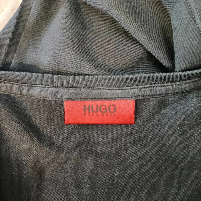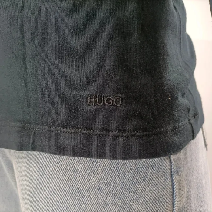 ⚠️ LIRE ATTENTIVEMENT LA DESCRIPTION ⚠️ 🚀 Envoi rapide 💎 État 9/10 - Très bon état Ce T-shirt noir à col V de la marque HUGO est en très bon état. Sa coupe col V lui donne une touche d'élégance. Fabriqué en 95% coton et 5% élasthanne, il est confortable à porter. Parfait pour un look décontracté mais stylé, ce T-shirt sera un excellent ajout à votre garde-robe. Carrure : 40cm env, taille des manches : 56cm env, tour de poitrine : 80cm env, longueur totale : 56cm env. Toutes les ventes sont reversées intégralement à l'association Amitié Partage, association à but non lucratif qui vient en aide aux plus démunies. Votre achat n'est pas seulement un vêtement, c'est un véritable soutien à notre association.
