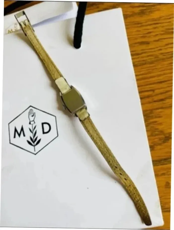 Sublime montre ancienne vintage art déco bracelet cuir blanc et cadrage argent