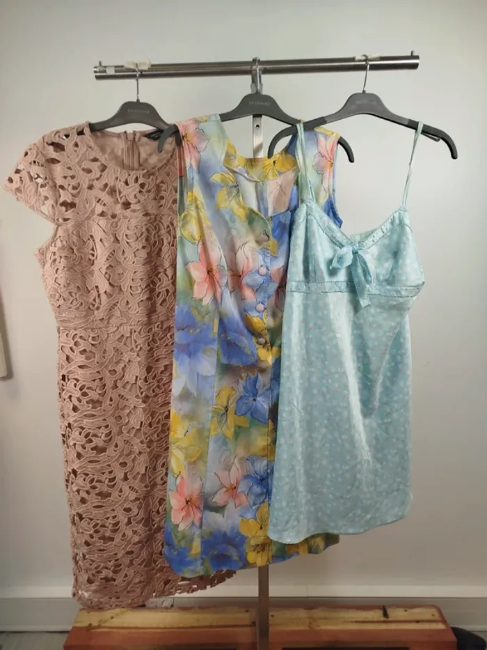 dress bundle, lace dress, floral print, satin slip dress, size L, reseller lot