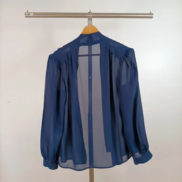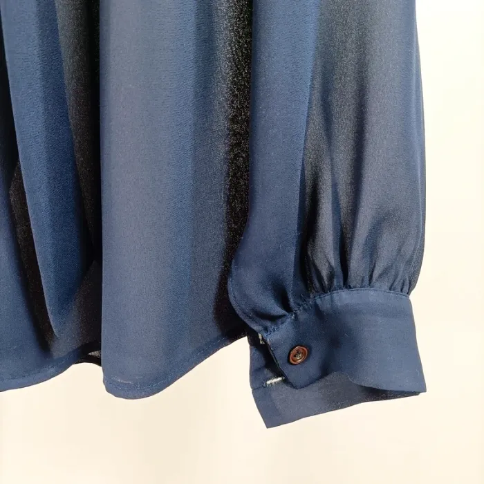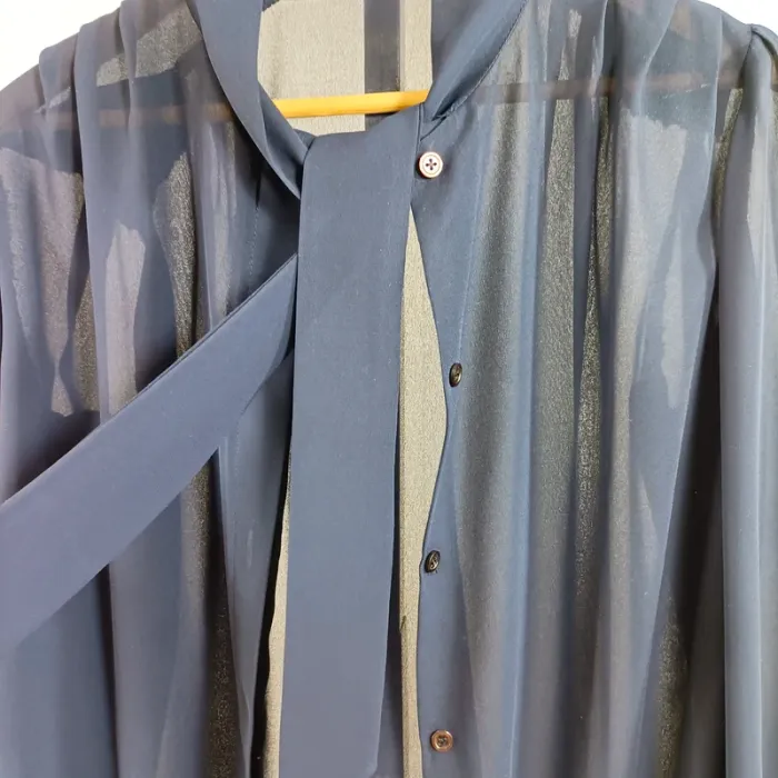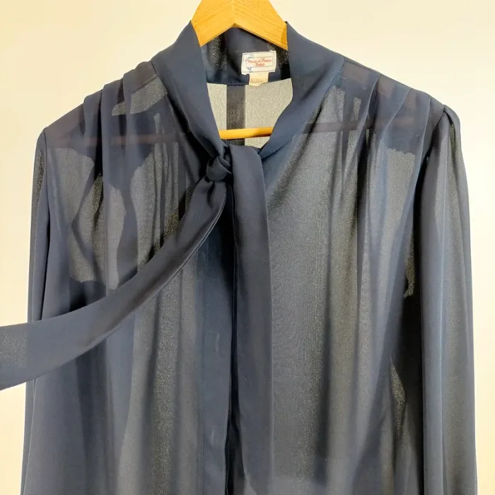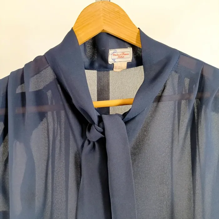 Blouse vintage bleu marine fluide transparente nœud lavallière manches longues Taille 40 est A1350 - photo numéro 10