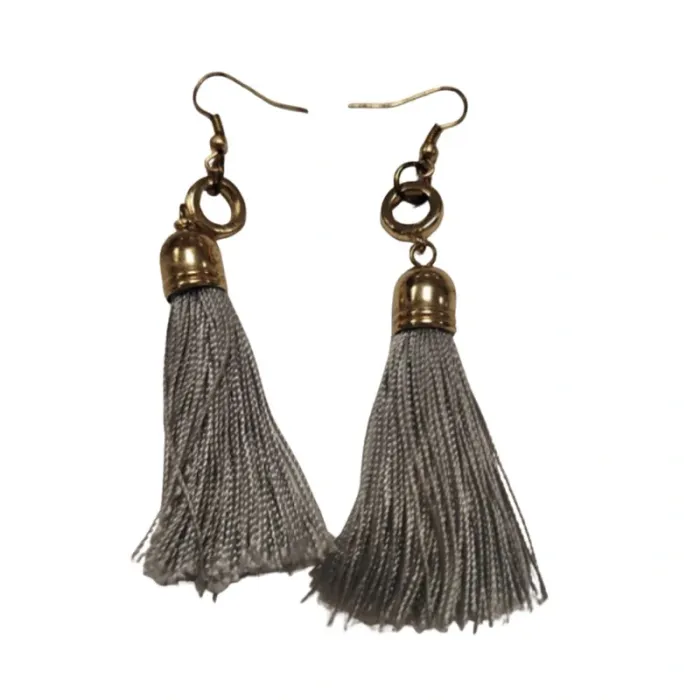 Boucles d’oreilles pompons gris métal doré style bohème chic légères BO02