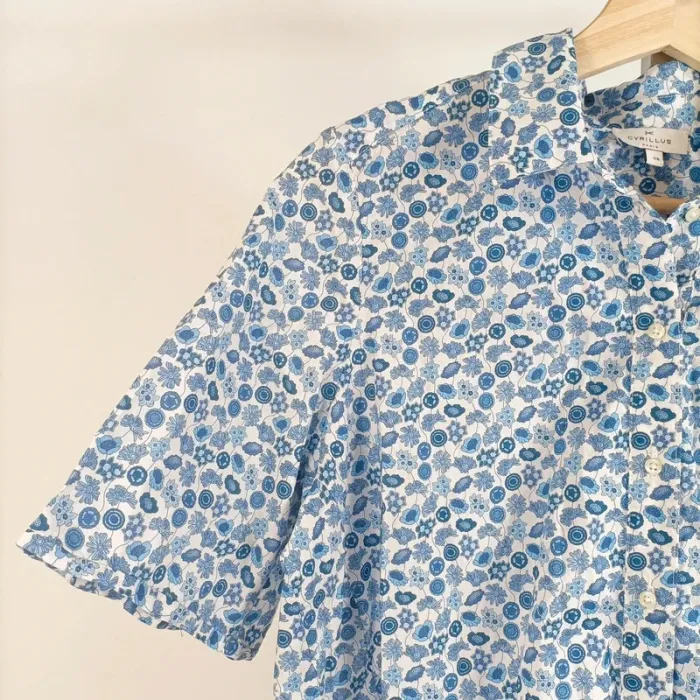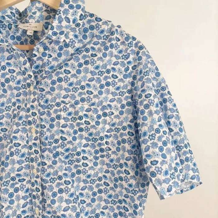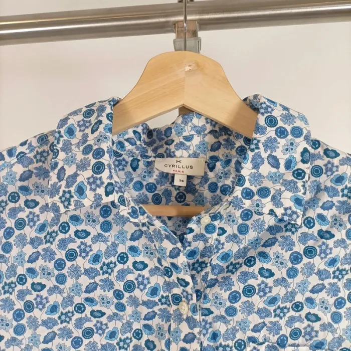 Chemise Cyrillus femme 36 à manches courtes imprimé fleuri bleu et blanc A522 - photo numéro 1