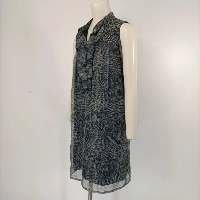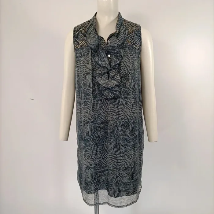 Robe sans manches imprimée bleu Ange taille M col volanté fluide légère chic A112 - photo numéro 1