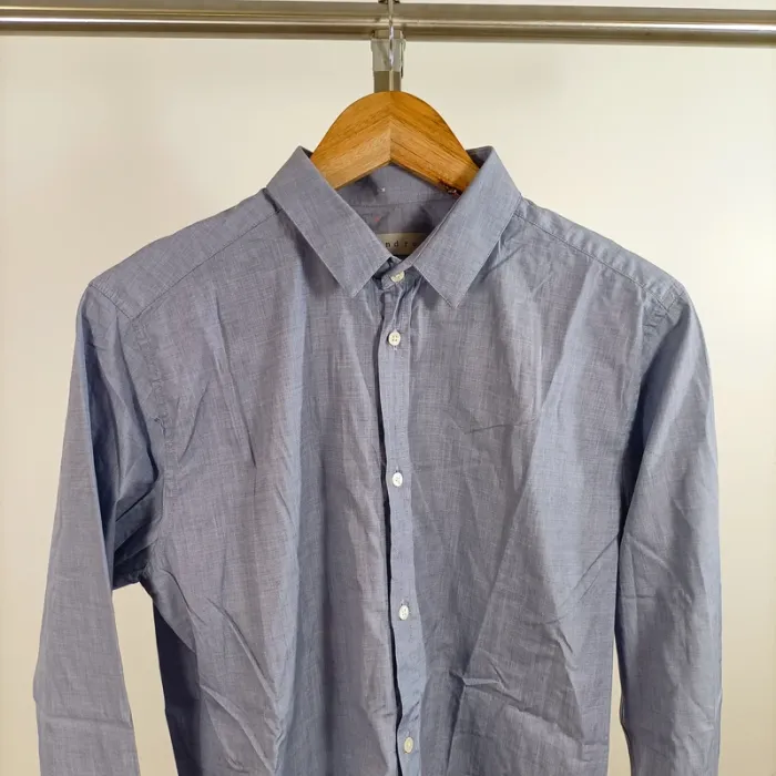 chemise Sandro, chemise bleu clair, chemise homme ajustée, chemise coton, col classique, Sandro Paris, style sobre, chemise épurée, chemise élégante, mode masculine
