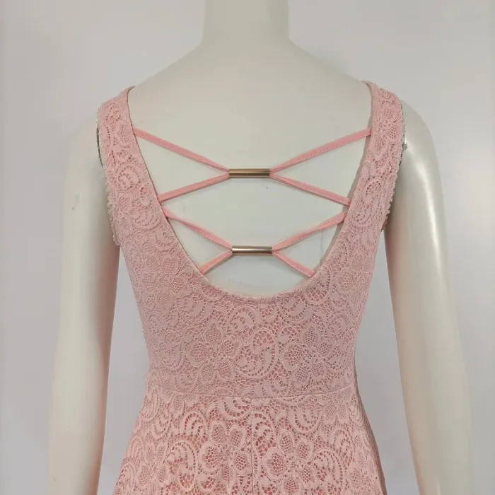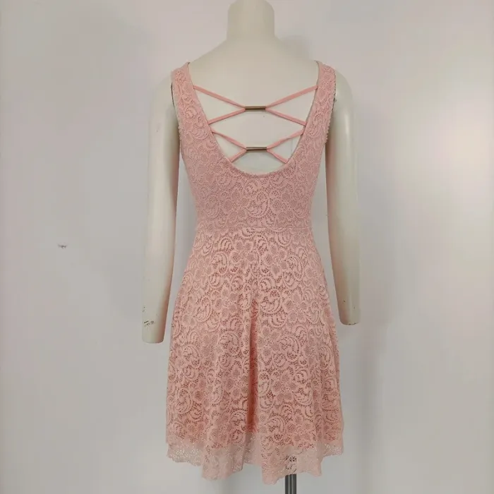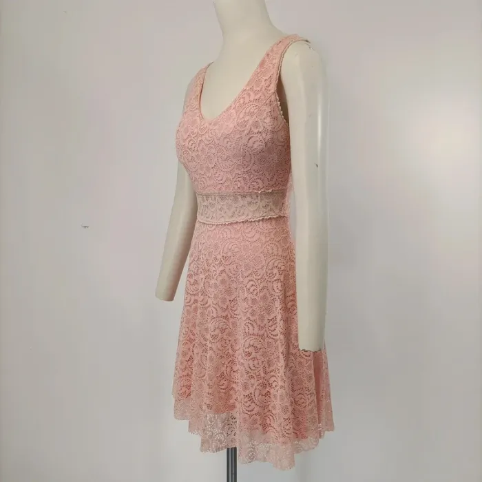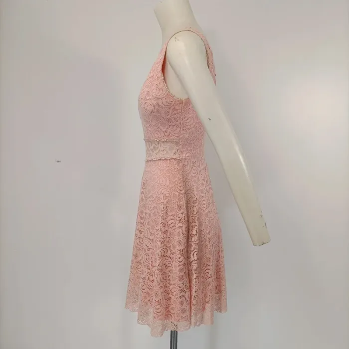 Robe patineuse rose poudré en dentelle - dos lacé - Taille S estimée - A152
