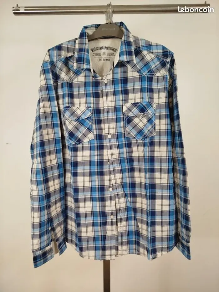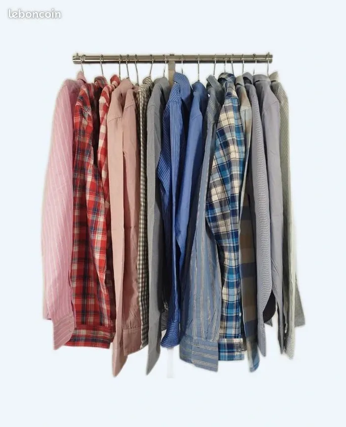 Vend lot de 15 chemises homme Très bon état Liste des chemises et taille dans l'ordre du portant ( de gauche à droite): Descriptif - Marque , taille 1° Rose rayé - Jules T.3 39/40, fitted 2° Rouge et bleu à carreaux - L.o.g.g T2 M, fitted 3° Rouge et blanche à carreaux - Soul Edge, T. M 4° Fines rayures rouge - Jaqk, T. M fit 5° fines rayures rouge - EDC brand, T. M 6° vichy gris et blanc - L.o.g.g T. S 7° Plumetie bleu - Mexx, T. L slim fit 8° bleu rayé blanches - Zara man T. M 38 tailored fit 9° Bleu uni - Zara man T. M 38 tailored fit 10° Bleu rayé gris et blanc - EDC Brand, T. M 11° Bleu et blanc carreaux - EDC Brand, T. M 12° Grand carreau blanc et café - L.o.g.g, T. M 13° Bleu fines rayures blanches - Jaqk, T. M, 14° blanches rayures bleues - Jules, T. M 15° Bleu claire avec plastron - JAQK , T. M N'hésitez pas à demander plus de photos, La vente est faite au bénéfice de l'association caritative Amitié Partage, association à but non lucratif qui vient en aide aux plus démunies. #AmitiéPartage_lot