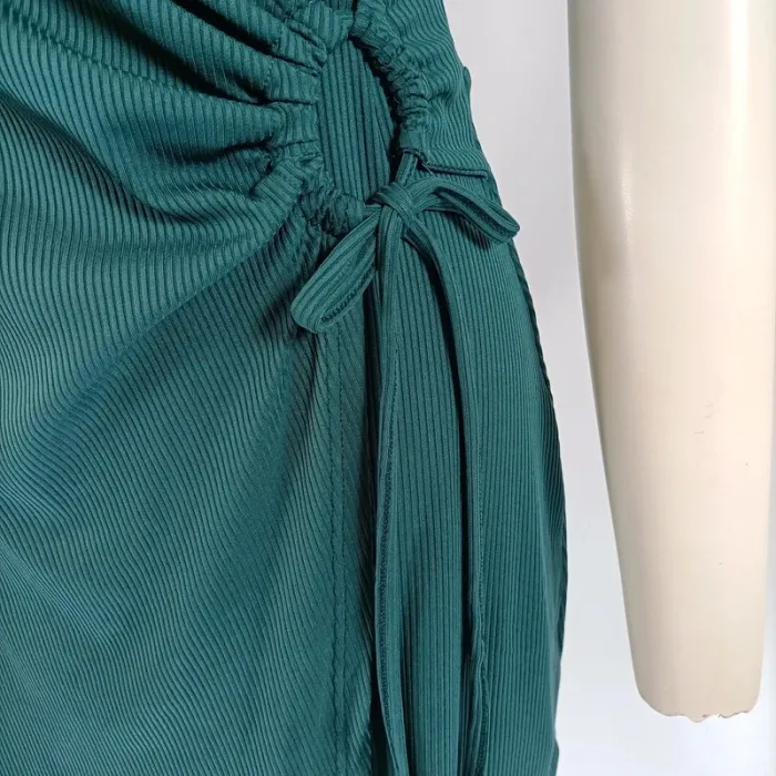 Robe courte verte vert d'eau cache-cœur côtelée - Taille S - État neuf - A123 - photo numéro 6