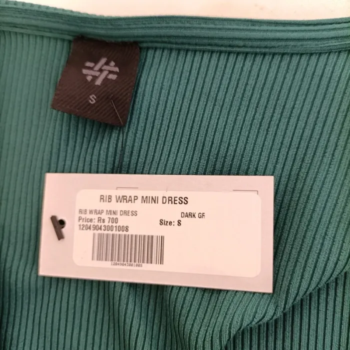 Robe courte verte vert d'eau cache-cœur côtelée - Taille S - État neuf - A123 - photo numéro 5