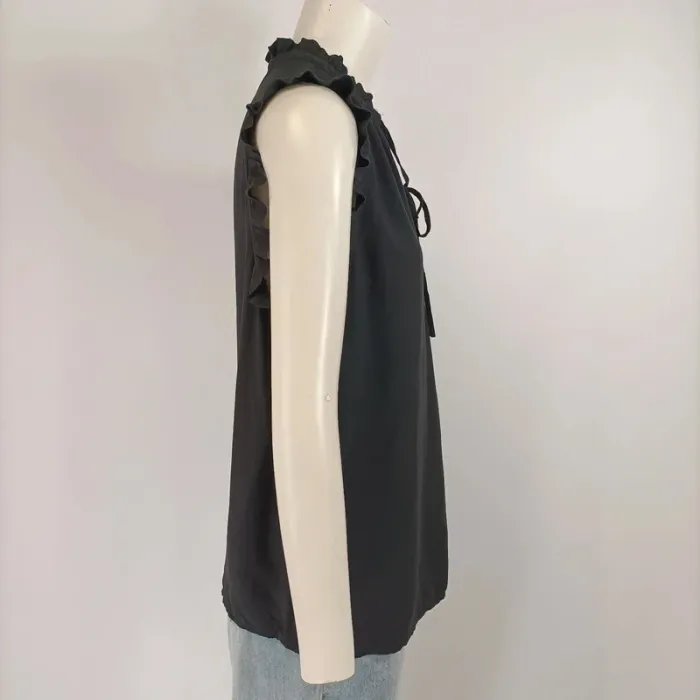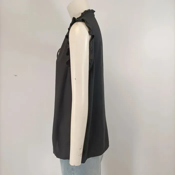 Top noir sans manche à volants – Taille 40 - Esmara - cordons noirs A364 - photo numéro 8