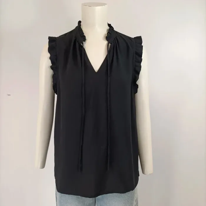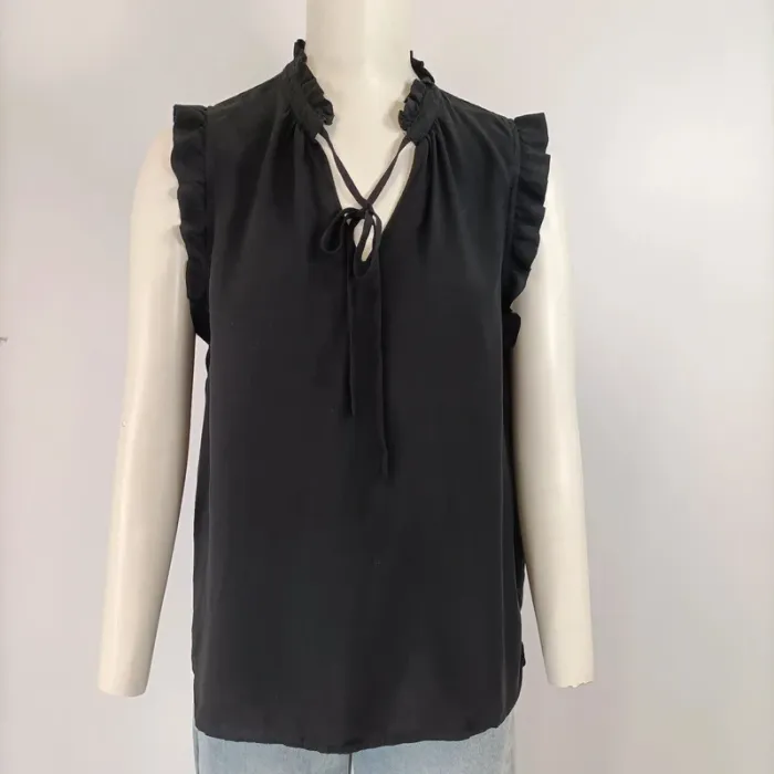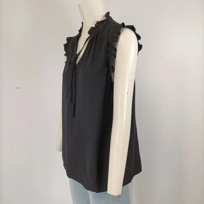 Top noir sans manche à volants – Taille 40 - Esmara - cordons noirs A364 - photo numéro 1