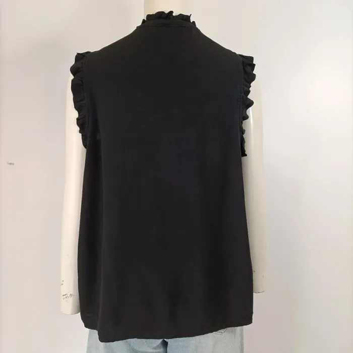 Top noir sans manche à volants – Taille 40 - Esmara - cordons noirs A364 - photo numéro 3