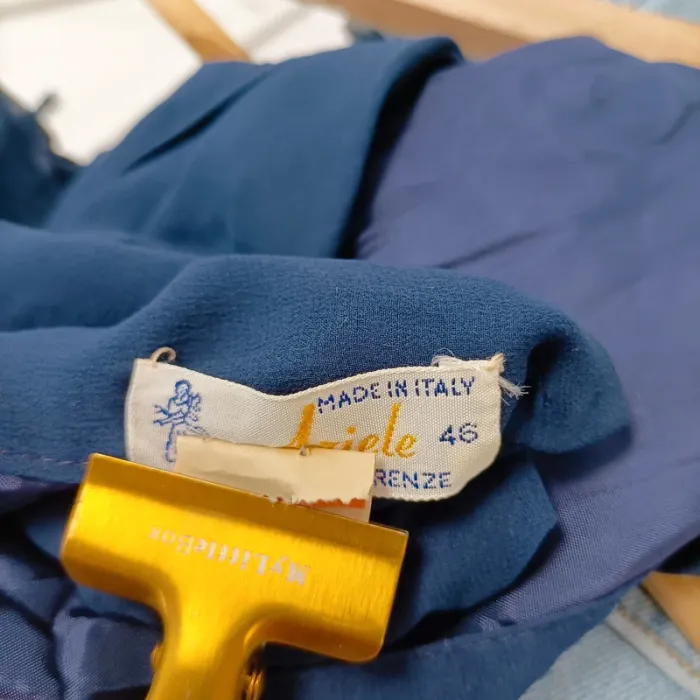 top seta blu navy, camicetta senza maniche, blusa elegante donna taglia 46, top plissettato seta Italia