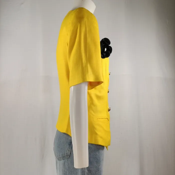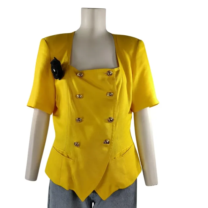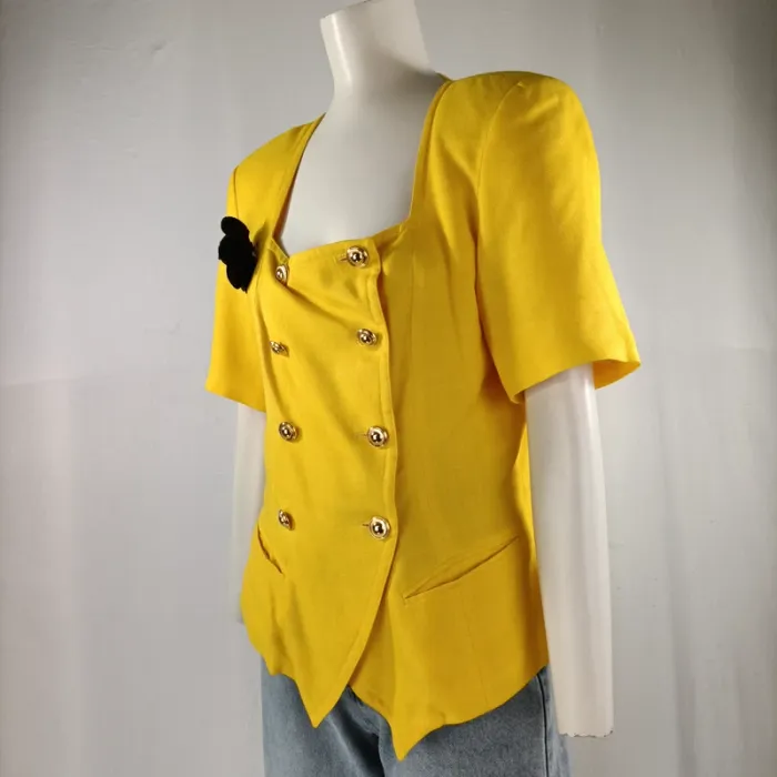 Veste jaune satinée Ted Lapidus Paris boutons dorés et fleur noire T42 A1186