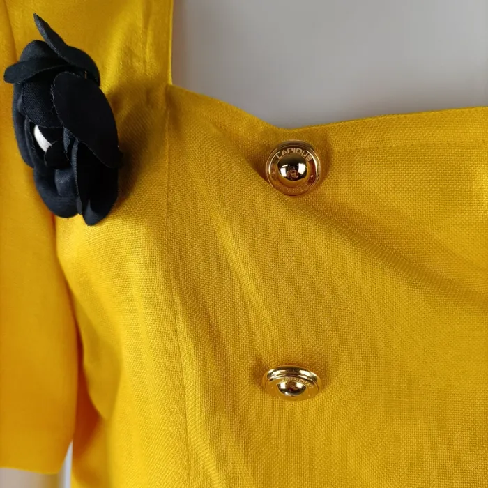 Veste jaune satinée Ted Lapidus Paris boutons dorés et fleur noire T42 A1186 - photo numéro 8
